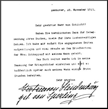 Gertrud von Hindenburg an Frhr. v. Schlicht