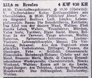 ![]() Sender Breslau am 20.1.1928 „Frauen, die überlegen” von Frhr. v. Schlicht |