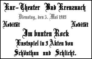 ![]() „Öffentlicher Anzeiger für den Kreis Kreuznach” vom 4.5.1903 |