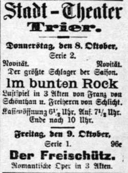 Aufführungen am 8., 13.Okt. 1903 im Stadt-Theater zu Trier. |