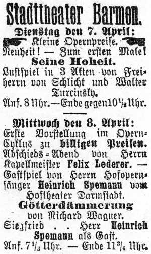 In der „Barmer Zeitung”, Nr. 85, vom 9.April 1908 liest man wie folgt: